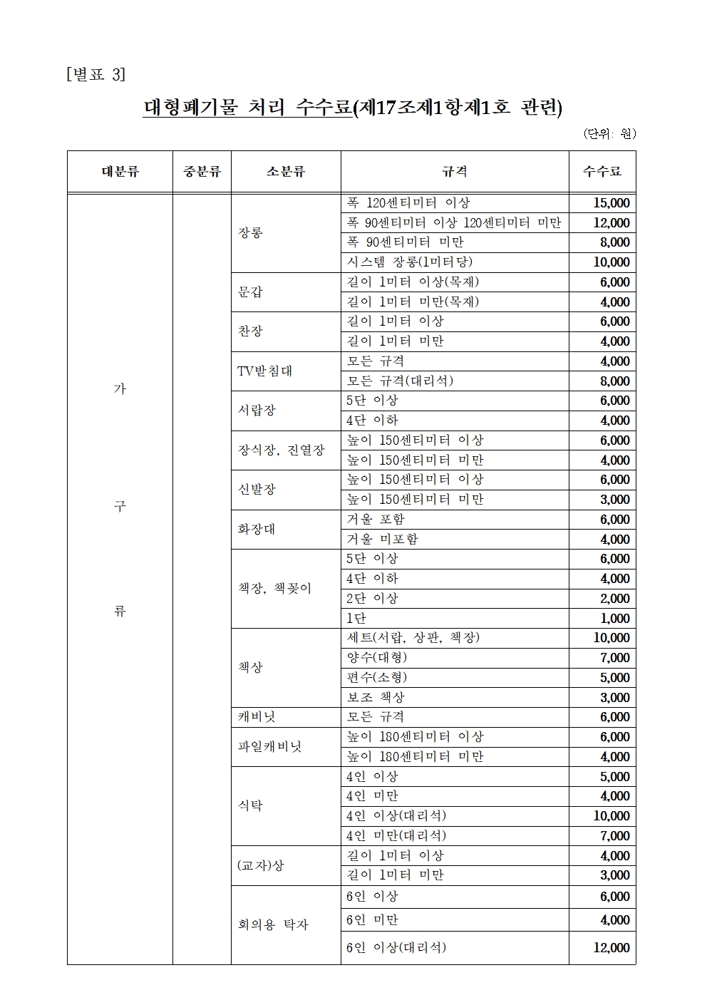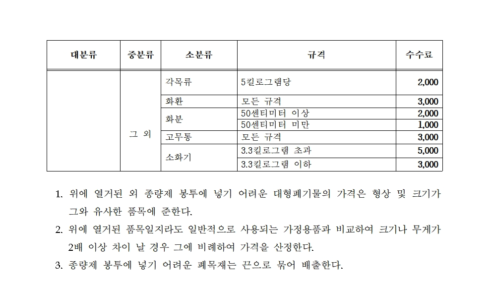 1) 대형 생활 폐기물 = 폐소형 가전제품 목록