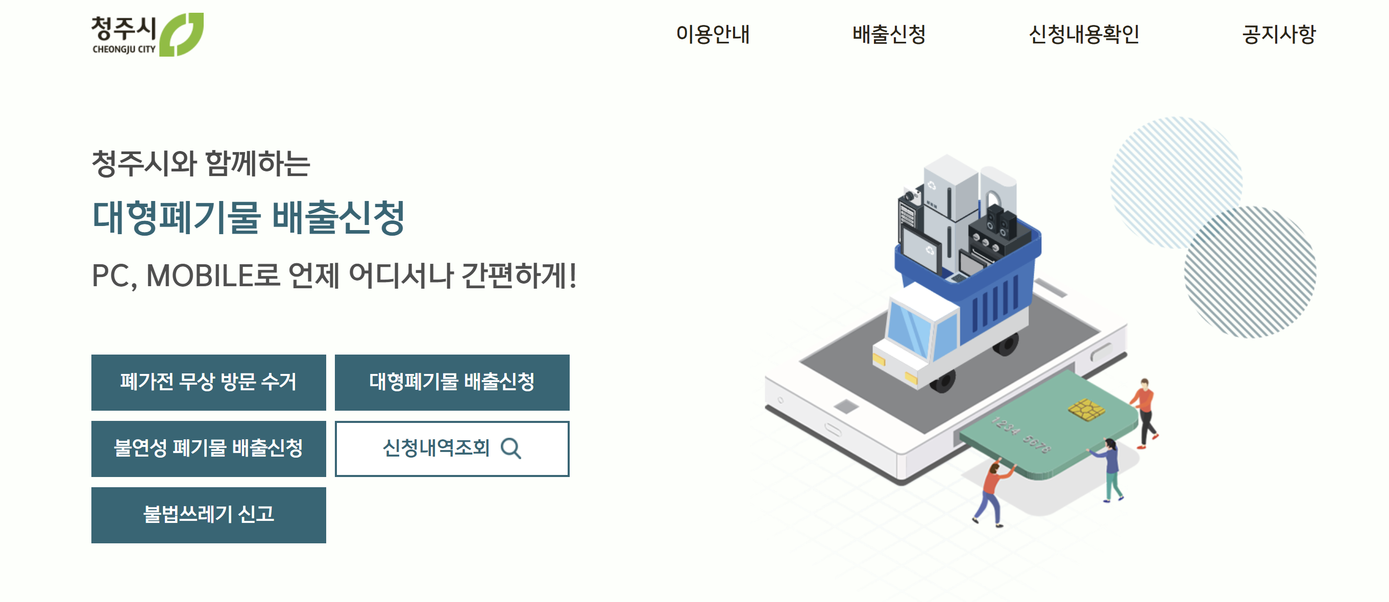 1. 청주시 대형폐기물 관리 시스템에서 인터넷 신청 발급하기